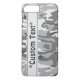 Camouflage Muster Smartphone Gehäuse in urbanem Grau mit bearbeitbarem Textfeld. Anpassen mit bis zu 15 Buchstaben, Ziffern oder Symbolen. Erhältlich für die neuesten iPhone- und Galaxy-Modelle.