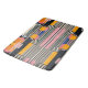 Art Deco und Bauhaus-inspiriert Ästhetik, mit einem strukturierten Gleichgewicht von vertikalen Streifen und geometrischen Formen. Die Mischung aus kühlem Senfgelb, aquamarin, weich rosa und schwarz schafft einen starken Kontrast und macht ihn zeitlos und modern.