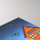 Farbenfrohe und helle kleine Stadtgemeinde mit einem traditionellen Weihnachtsbaum in der Mitte. Dieses Design hat zwei Hauptversionen, eine zeigt die Stadt bei Tageslicht, einschließlich Regenbogen und Sonne, die andere bei Nacht, und zeigt einen Sternenhimmel. Entworfen von einer kleinen Stadt aus Lehm, die Suki für ihr Haus gemacht hat.