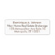 Dieses individuell gestaltbare Rücksendelabel weist elegante, neutrale Töne auf, die Ihrem Anwesen oder Ihrer persönlichen Marke eine Marke verleihen. Ideal für Händler, Makler, Gutachter, Entwickler, Bauunternehmer oder Agent. Dieses benutzerdefinierte Label stellt eine Vorlage mit Orten zur Personalisierung Ihres Namens, Ihres Unternehmens und Ihrer Adresse bereit. Dieses Design ist Teil einer Reihe von aufeinander abgestimmten Büroartikeln und kommt in verschiedenen Farbtönen mit einem minimalen, eleganten Stadtbild, in dem Schriftart und Farben aufeinander abgestimmt werden. Original Illustration und Design © Bel Studio.