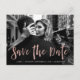 Diese stilvolle Hochzeit speichern das Datum Postcard verfügt über moderne, handgeschriebene Skripte in einem Imitat Rose Gold Schwarz-Look, mit Platz für die wichtigsten Hochzeitsdetails und Ihr Lieblings-persönliches Foto von Ihnen beiden.
