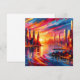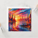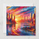 Ein lebhafter Sonnenuntergang über einer lebhaften Stadtumgebung mit warmen Orange- und Rosatönen, die sich von Wolkenkratzern aus Glas abheben.