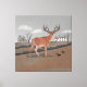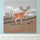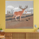 Colourful artwork of a majestic stag standing proudly in the English countryside, with an old church and a couple of old houses in the background. Perfect for anyone who loves folk art.