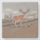 Colourful artwork of a majestic stag standing proudly in the English countryside, with an old church and a couple of old houses in the background. Perfect for anyone who loves folk art.