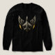 Ein gewagtes Luftfahrtsemblem mit der Silhouette eines modernen Kampfflugzeugs, gerahmt von metallischen Flügeln und Blitzschrauben. Dynamisch, militärisch inspiriert und stilvoll erstklassig - perfekt für Fans, Piloten und Liebhaber leistungsstarker Flugzeugkunst.