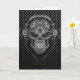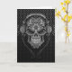 Ein durchdachtes DJ zuckern den Schädelentwurf, der mit verwickeltem Wirbel und Punktmustern verziert wird. Kopfhörer sitzen auf den Schädel mit zwei Drähten, die unten hängen. Die Komplexlinien und -kreise sind festes Schwarzes, während der Innenraum des Schädels Edelstahlbeschaffenheiten und silberne Farben beendet wird. Der Schädel sitzt auf einen Stahlmaschenhintergrund, der dieses industrielle Muster abschließt. Dieser aggressive Tag des toten inspirierten Bildes ist eine bunte Darstellung von DJ-Kultur.