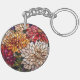 Carry a touch of beauty wherever you go with this stained-glass dahlia acrylic keychain. Featuring luminous dahlias in burgundy, blush pink, gold, and soft white, the design displays a radiant mosaic inspired by traditional stained glass—printed clearly on both sides for extra charm and visibility.