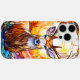 A beautiful stained-glass image of a deer. The deer is front and center, wading through water with trees in the background. The colors yellow, orange, and blue dominate the scene. The deer is standing tall with confidence and calmness. He is in his element. This stained-glass image stands out to any animal lover seeking uniqueness and style.
