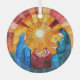 Capture the true spirit of Christmas with this stunning ornament featuring a vibrant, artistic rendition of the Nativity scene, reminiscent of a beautiful stained-glass window. The bright star and rich, jewel-toned colors of Mary, Joseph, and the Baby Jesus make this a meaningful and eye-catching addition to your holiday decor.