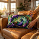 Stained Glass Peacock Floral Wreath Art Lendenkissen