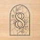 Faux Stained Glass Style Table Number Eight. Please note: This is a stained-glass inspired printed design, not real stained glass. Modern stained-glass inspired table number 8, featuring bold cathedral-style leading lines in a clean, minimalist layout. Line colour and background can be customised to match your wedding palette. Printed on clear acrylic. Sold as individual table numbers, as the table number within the design is non-editable. Perfect for modern, minimalist, black-and-white, or cathedral-inspired weddings.