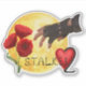 Heller Aufkleber über Stalker 2, Ukrainisches Spiel. Hier sehen Sie rote Blume, Mond und Hand. Mit Liebe bemalt.