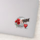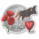 Heller Aufkleber über Stalker 2, Ukrainisches Spiel. Hier sehen Sie rote Blume, Mond und Hand. Mit Liebe bemalt.