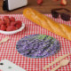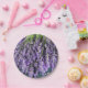 Ein Set von Tellern aus Papier mit einem Foto von Lavendelstalks. Schönes Lila Thema!