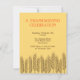 Erntedank dreht sich um Überfluss und Dankbarkeit, und diese Einladungskarte illustriert das, indem sie eine Weizenreihe mit goldgelbem Hintergrund zeigt. Ihre Event- und Party-Informationen sind elegant Set oben.