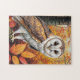 Dieses naturbelassene Puzzle zeigt Kunstwerke einer Scheuneneule, die auf einem Ast in einer Natur-Umgebung im Herbst errichtet wurde. Die Eule ist unter Herbstlauben in einem Waldwald dargestellt, mit einer warmen Farbpalette in Rot-, Orange- und Brauntönen. Ideal für Herbstfreunde und Eukalyptusliebhaber!