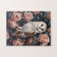 Eine majestätische Scheuneneule ragt elegant zwischen sanften rosa Rosen hervor, ihr durchdringender Blick kontrastiert wunderbar mit den zarten Blütenblättern. Die traumhafte Komposition verbindet rustikalen Charme mit einer romantischen Touch und schafft so eine faszinierende und zeitlose Szene.