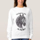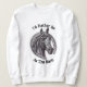 "Ich wäre eher im Stall" ist die Stimmung, die diese Vintage Pferdekizze begleitet. Ein großes, dunkles Pferd mit einer langen Mähne bricht sich durch ein Hufeisen in der Mitte dieses Sweatshirts. Oben und unterhalb dieses Schwarz-Weiß-Ätzes ist der Text, der auf Wunsch leicht angepasst werden kann.