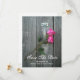 Eine Hochzeit speichert die Dattelkarte mit einem Bild von zwei rosa Rosen, die in den Griff einer Scheunentür gelegt werden. Suchen Sie im Pink Schoolhouse nach passenden Artikeln.