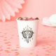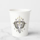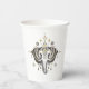 Niedliche Elefantenillustrierung mit Gold- und Grautönen auf weißem Hintergrund.
