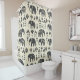 Rüstikaler Stammes-Elefanten-Muster-Duschvorhang mit auffälligen schwarzen Elefantensilhouetten, geometrischen Motiven und volksinspirierten Details auf neutralem texturierten Hintergrund. Ein stilvolles und zeitloses Design, ideal für Safari-Liebhaber, Boho-Dekor-Fans, Kinderzimmer-Themen und alle, die ethnisch inspirierte Kunst lieben.