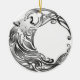 Stammesdesign mit einem Wolf auf einem Halbmond in Schwarz, Grau und Weiß.