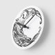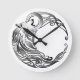 Stammesdesign mit einem Wolf auf einem Halbmond in Schwarz, Grau und Weiß.