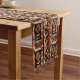 Die lebendige, afrikanisch inspirierte Tischrunner mit fett geometrischen Mustern in Rot, Gelb und Creme verleihen Ihrem Tischdekor eine angenehme Note. Dieses abstrakte Stück mit einem reichen schwarzen Hintergrund mit rhythmischen Streifen, Dreiecken, Kreisen und Diamanten vereint das Wesen der Stammeskunst. Es eignet sich perfekt, um jedem Ambiente eine Touch kultureller Eleganz und bunten Flair hinzuzufügen.
