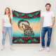 Das ist ein einzigartiges "One of a Kind" Tribal Wolf Fleece Blanket! Es hat einen Indianerstamm-Wolf auf einem orangen und türkisfarbenen Hintergrund...Umgeben von einer Südwestgrenze in Türkis, Orange und Schwarz. Original Art Design von Künstler Kerry Miller.