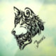 Intrikate Mustergestaltung eines einsamen Wolfenkopfes