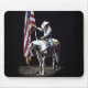 Ein wunderschönes Foto des Cowgirl auf einem Palomino & weißen Paint Horse, das die amerikanische Flagge während der National Anthem auf der Snake River Stampede von 2014 hält.