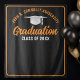 Diese moderne, orange und schwarze Graduiertentapete zeigt klassische Typografie Ihres High School- oder Uni-Namens für die Klasse des Jahres 2025. Passen Sie diese Foto-Kulisse mit Ihrem geschlossen Jahr unter der schicken handgeschriebenen Drehbuch- und Graduiertenkappe für eine personalisierte Graduiertendekoration an.