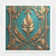 Beautiful gold leaves against a teal background cover this Standard Dinner Napkin.