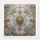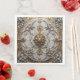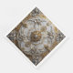 A silver and gold design resembling an opulent ceiling medallion covers this dinner napkin.