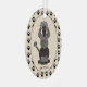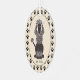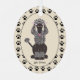 Niedliches, schwarzes Poodle mit rosa Ohrbändern. Adorable Augen und rosa Zunge heraus. Hellbeigefarbener Hintergrund mit Pfotenabdruck vorne. Anpassbarer Name des Begleiters unter dem Poodle. Zurück in beige-braun mit paw-bedrucktem Muster-Overlay. Grafik: Lori@SaltTownStudio.