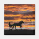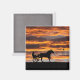 Standard Trotting Racehorse bei Sunset, Magnet. Digitale Kunst. Silhouette von Standardpferd und Fahrerjog bei Sonnenuntergang. Vollständig anpassbar, machen Sie es zu Ihrem eigenen.