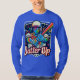 Das Design des "Batter Up"-T - Shirt zeigt eine dynamische Baseballszene mit einer kühnen, aktionsreichen Abbildung eines Spielers, der eine Fledermaus schwingt. Der Spieler wird mittendrin gefangen, wobei die Energielinien die Bewegung hervorheben. Im Hintergrund verblasst ein Baseballdiamant subtil in den Blick, und die Worte "Batter Up" sind in fett formatiertem, sportlichem Schriftart eingebettet. Das Design ist lebendig, mit einer Mischung aus Teamfarben - wie tiefblau und hell weiß - und schafft einen starken Kontrast. Das Shirt vermittelt die Spannung des Spiels, perfekt für jeden Baseballfan.