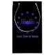 Ein lila und blaues Fraktal-Bild, mit einem Magen David (Stern von David), in der Mitte, als Chanukkah menorah. Das Motiv wird als Rahmen von 12 Sternen wiederholt. Die Kerzen wurden angezündet. Fügen Sie Ihren eigenen Text hinzu.