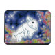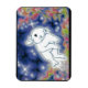 Ein süß weißes Kaninchen, das durch den Weltraum fliegt, ursprünglich ein Künstler, der Karten Design von Carrie Michael.