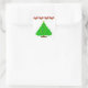 ein grüner Weihnachtsbaum mit einem goldenen Stern auf der Oberseite und farbenfrohen Sternen, die den Baum schmücken. Goldglocken mit roten Bögen über dem Baum. Fügen Sie Text hinzu, wenn Sie möchten.