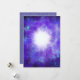Dieses abstrakte "Star of Wonder" Gemälde besteht aus einer hellen weißen Sternexplosion auf einem blauen und lila strukturierten Sternenhintergrund mit elektrisch blauem Blitz und Sternen. Die Rückseite der Karte ist sehr peri lila mit Schneeflocken und festlichen Grüße in weiße Schrift Typografie. Um einfach Ihren Familiennamen mit den einfach zu bedienenden Vorlagen auf der rechten Seite anzupassen, erstellen Sie eine personalisierte moderne, lebendige Weihnachtskarte. Original-Kunstwerk der Künstlerin Catherine Sweetman.