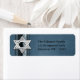 Rücksendetikett mit silberfarbenem Stern von David, gestreiftem Rand und blauem Hintergrund. Ideal für Karten oder Einladungen. Einfach mit Ihrem Text anpassen.