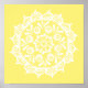 Diese weiße Mandala sitzt auf einem ruhigen gelben Hintergrund. Die Farben sind friedlich und fröhlich. Teil der Brosya Mandala Kollektion.
