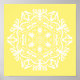 Diese weiße Mandala sitzt auf einem ruhigen gelben Hintergrund. Die Farben sind friedlich und fröhlich. Teil der Erghenn Mandala Kollektion.