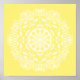 Diese weiße Mandala sitzt auf einem ruhigen gelben Hintergrund. Die Farben sind friedlich und fröhlich. Teil der Gwias Mandala Kollektion.
