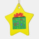 Fügen Sie Ihrem Baum einen Farbspritzer mit einem individuellen Ornament aus weißem Porzellan hinzu. Dieser ist sternförmig mit einem Geschenk-Paket in der Mitte, auf einem hellgelben Hintergrund. Sie können Ihre eigenen personalisierten Weihnachtsbaumschmuck für Kinder entwerfen, mit Fotos, einer Hochzeit, und Sie können sie mit einer persönlichen Botschaft auf beiden Seiten entwerfen. Jede hat eine elegante goldene Kette, die sie leicht zu hängen macht.