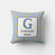 Dieses Monogramm-Kissen ist eine großartige Möglichkeit, eine moderne Touch zu Ihrer Zuhause hinzuzufügen oder einen besonderen Wunsch für eine Hochzeit oder eine Hauswärmung zu erfüllen. Ein hellgelbes Sternmuster erscheint vor einem hellblauen Hintergrund auf der Vorderseite und der Rückseite dieses Kissens. Ihr Monogramm wird zusammen mit dem Familiennamen und dem Jahr in einem Quadrat dargestellt. Der Brief an dieses einfache minimalistische Design kann nicht personalisiert werden. Wenn Sie einen anderen Brief suchen, besuchen Sie bitte unseren Shop und Karo aus unseren Kollektionen. Original Design - C. McGouldrick