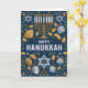 Celebrate the Festival of Lights with this beautifully detailed Happy Hanukkah card featuring a bold navy background adorned with Stars of David, gleaming menorah candles, dreidels, and golden gelt. The illustrated pattern design creates a festive and traditional feel—perfect for sending warm holiday blessings to family, friends, colleagues, or your community. A wonderful choice for anyone who appreciates classic Hanukkah symbolism and elegant seasonal artwork.