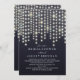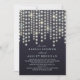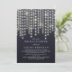 Schöne Brautduscheinladung mit leuchtend senkrechten, sternförmigen Saitenleuchten vor dunkelblauem Hintergrund.