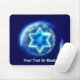 Ein blau-lila-farbenes Fraktal-Bild eines David-Sterns in einem Kreis. Passen Sie Ihren eigenen Text an.